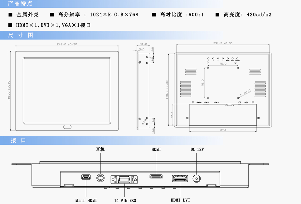 | 亮 度 | 420cd/m2 | ||