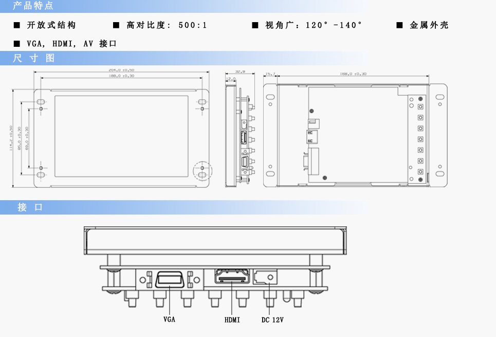 | 亮 度 | 450cd/m2 | ||